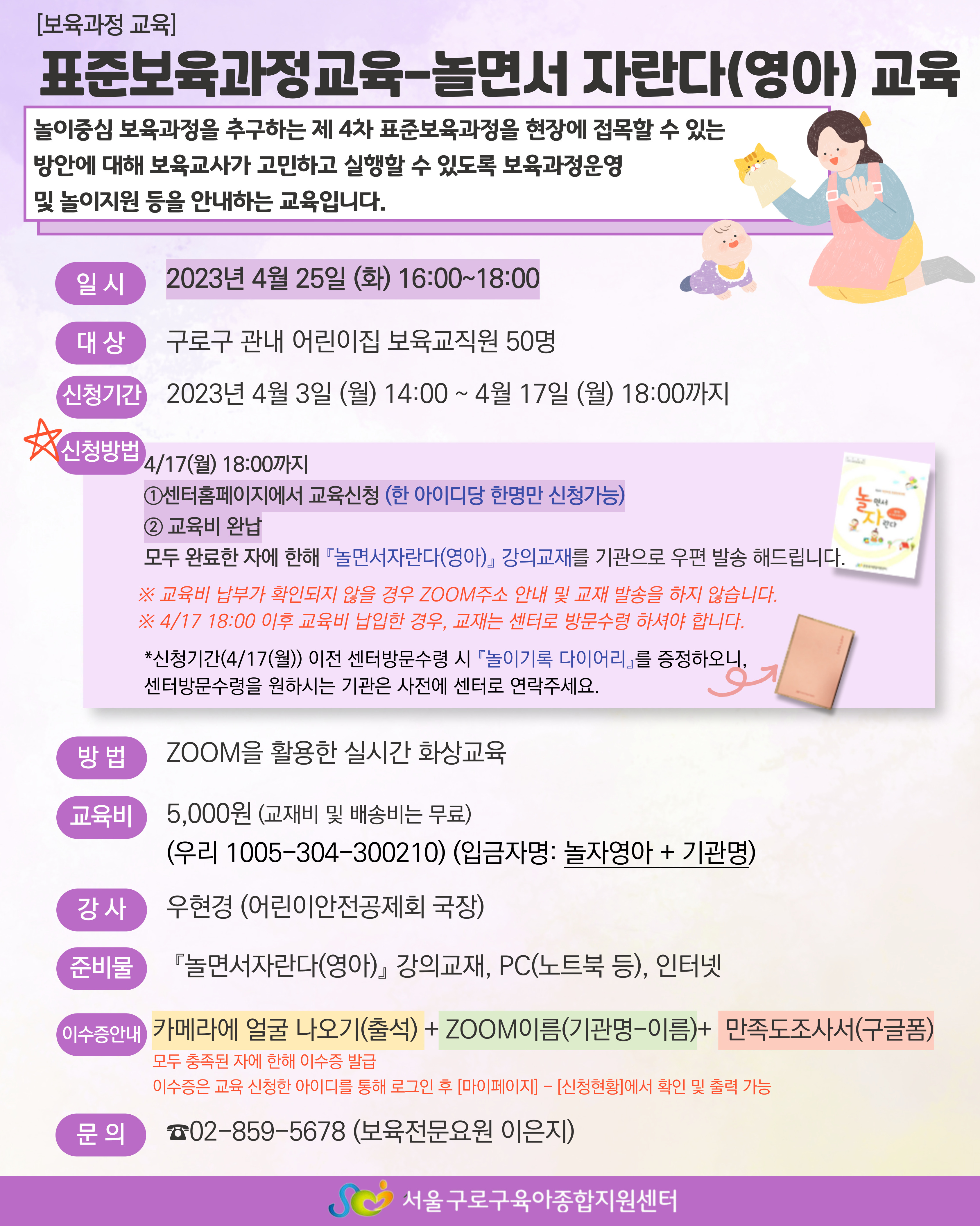 준비물 놀면서자란다(영아)강의교재, pc(노트북 등), 인터넷