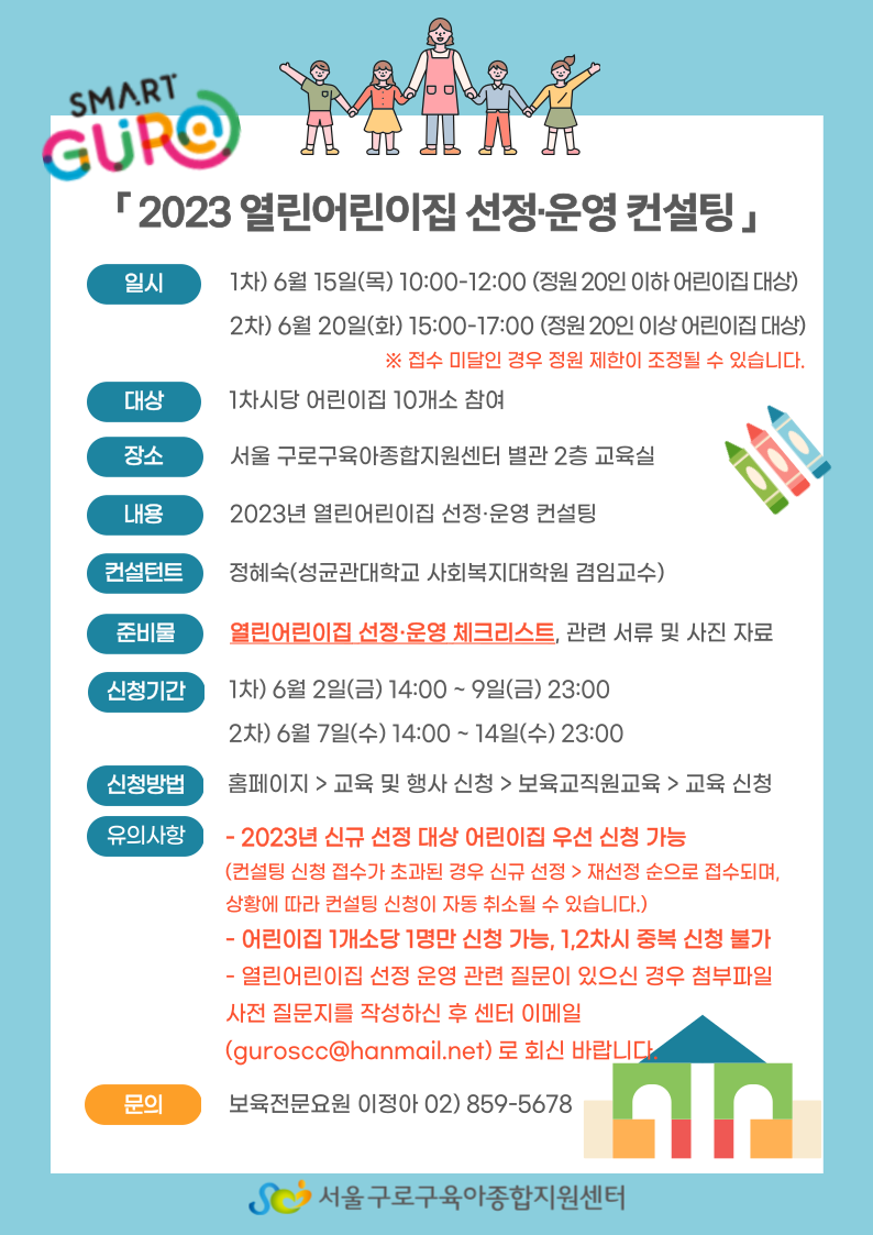 | 2023 열린어린이집 선정·운영 컨설팅(1차) |