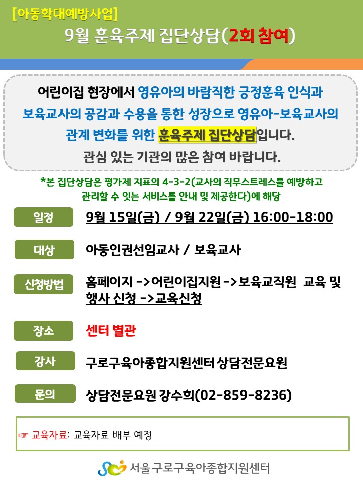 [아동학대예방사업-아동인권선임교사교육] 9월 훈육주제 집단상담(2회 참여)