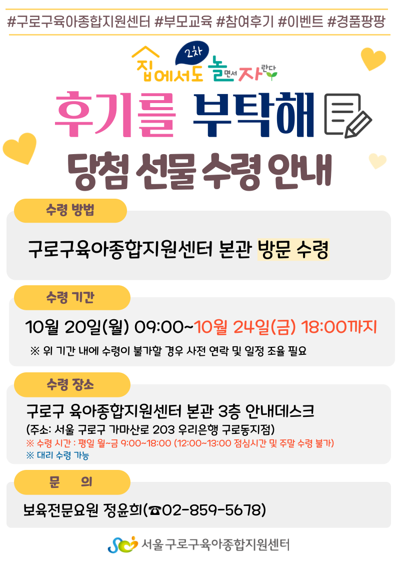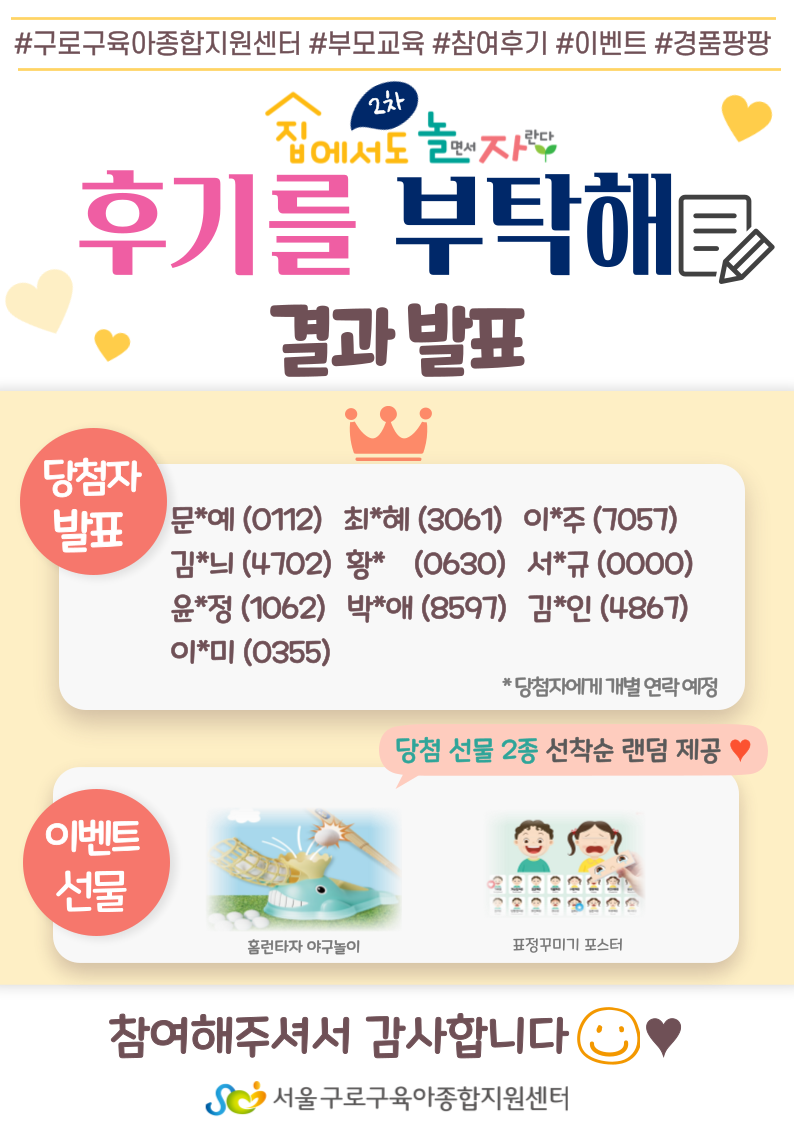 [GURO SCC-행사] [공통부모교육] 2차 온라인 부모교육 참여 후기 이벤트 당첨자 발표