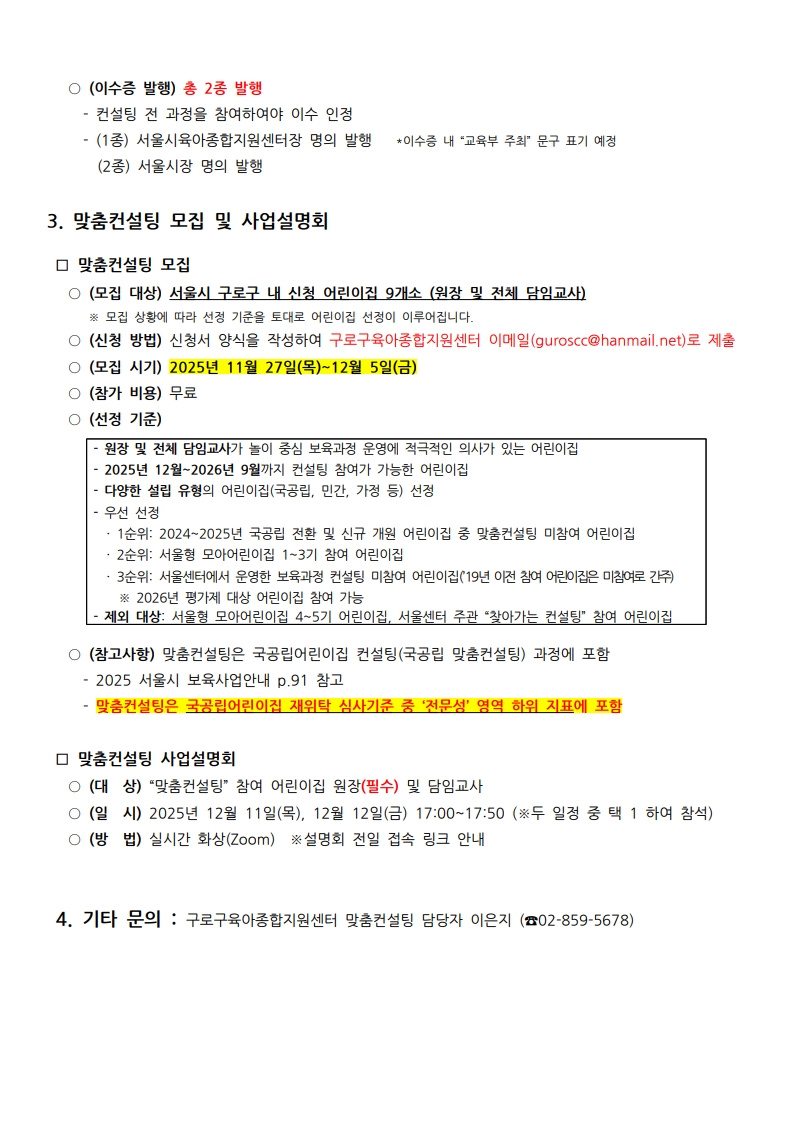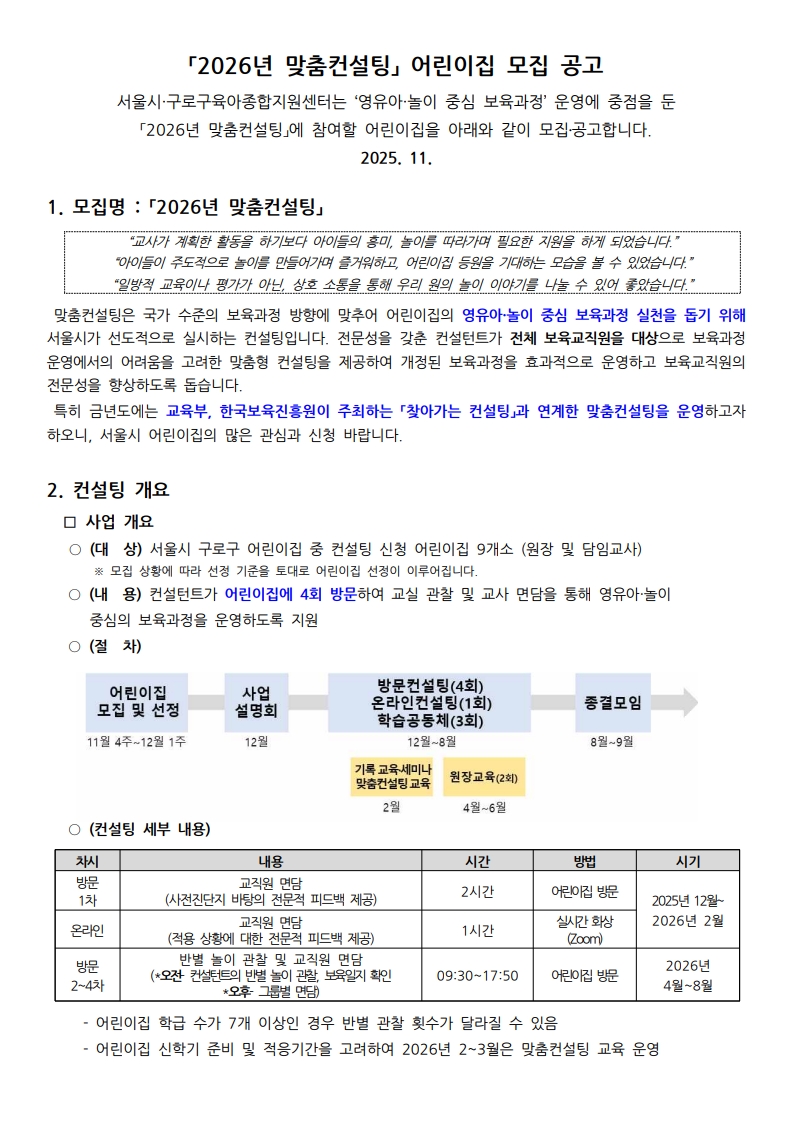 [GUROSCC-안내] 2026년 맞춤컨설팅 어린이집 모집 공고