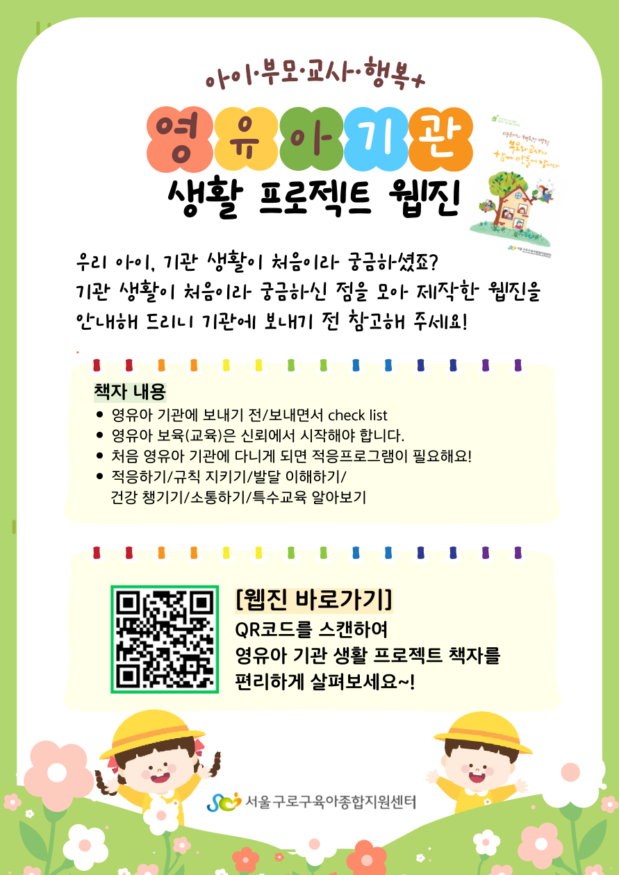아이·부모·교사·행복(+) 어린이집 생활 프로젝트 웹진 주소를 안내해 드리니 아이들의 기관 생활 전 참고해 주세요.