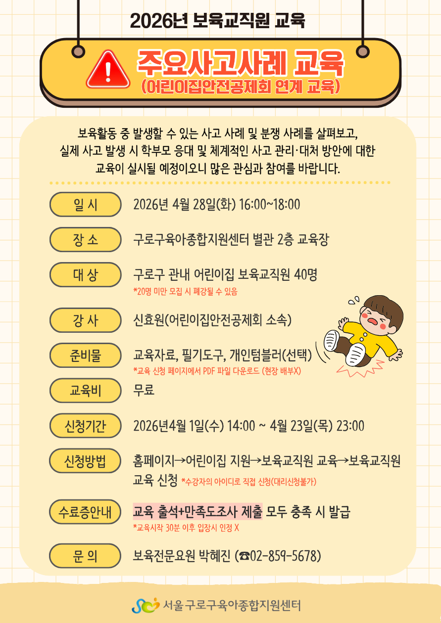| 어린이집 주요 사고 사례 교육 -어린이집안전공제회 연계 교육 |