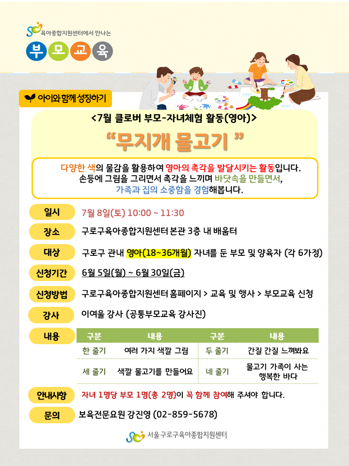 7월 클로버 부모-자녀체험활동(영아 18~36개월) - 긍정의 가족 "무지개 물고기" ★주말★