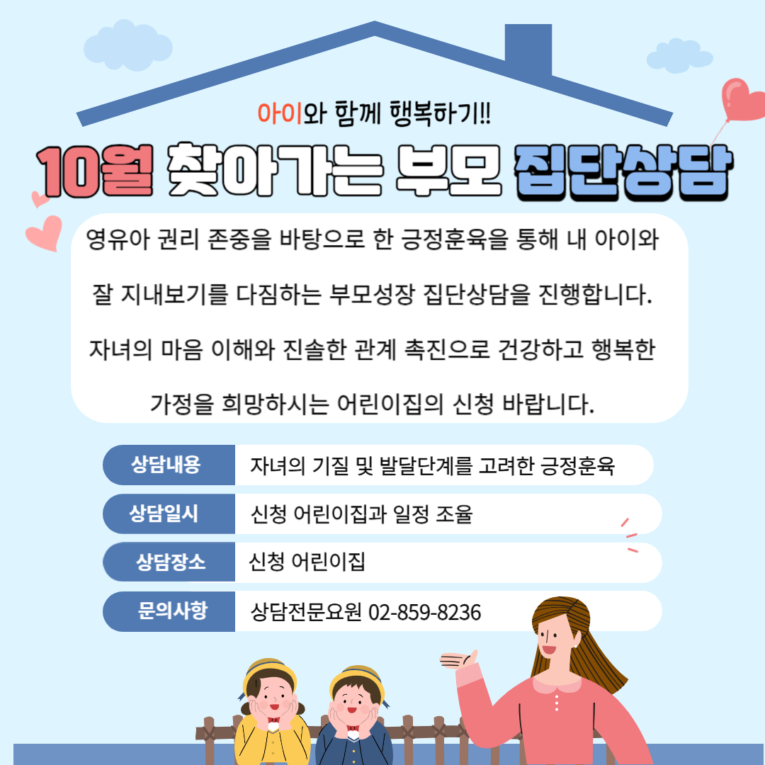[키움뜰 상담사업] 10월 찾아가는 부모 집단상담(어린이집과 일정조율)