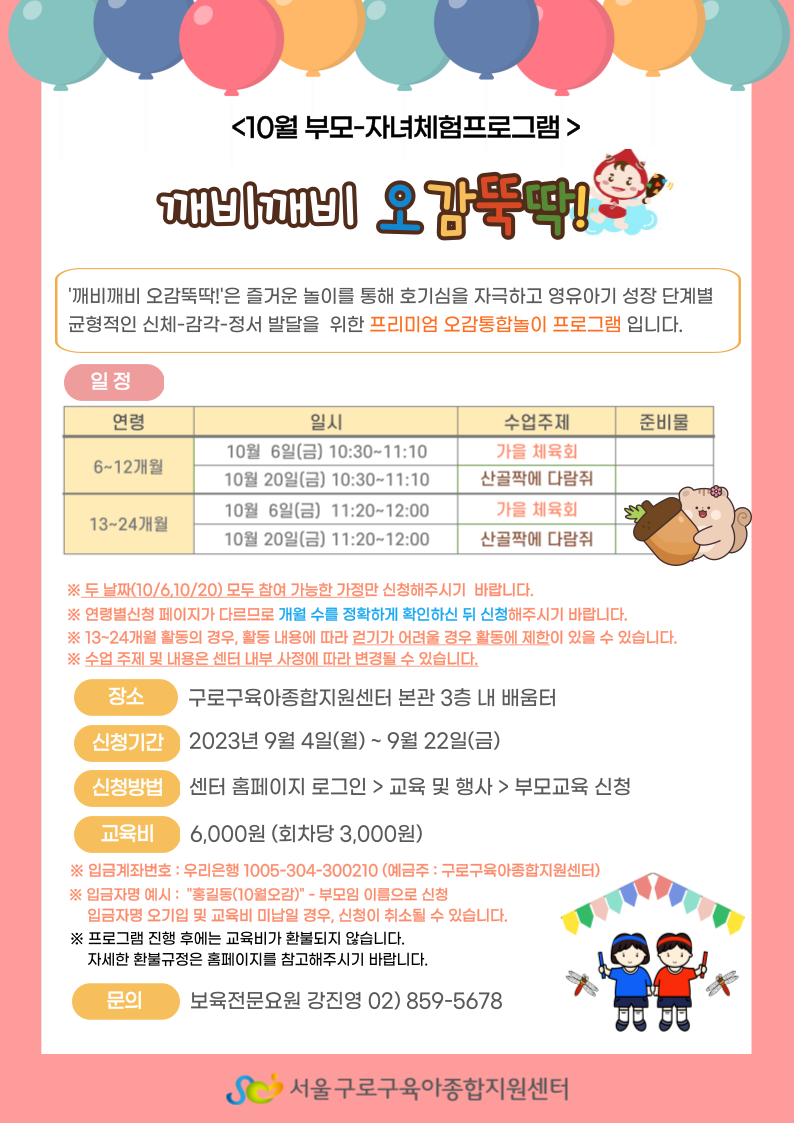 [오감놀이] 10월 깨비깨비 오감뚝딱 부모-자녀 체험 프로그램 (13-24개월 영아 대상)