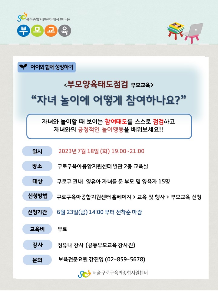 | 7월 부모양육태도점검 부모교육 '자녀 놀이에 어떻게 참여하나요?' ★야간교육★ |