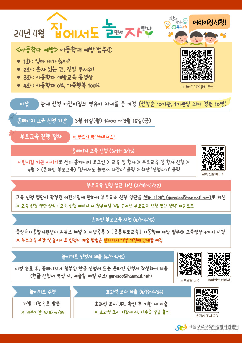 ★어린이집 신청★ [온라인 부모교육] 집에서도 놀(면서) 자(란다)!-아동학대 예방 범주①