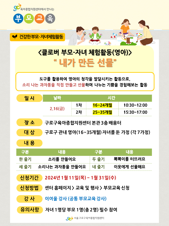 [클로버 부모-자녀 체험활동] (16~24개월 영아) 내가 만든 선물
