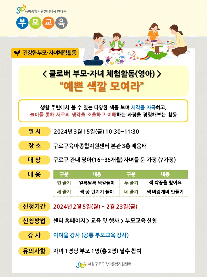 [클로버 부모-자녀체험활동] 예쁜 색깔 모여라(시각/게임) (16~35개월 영아)
