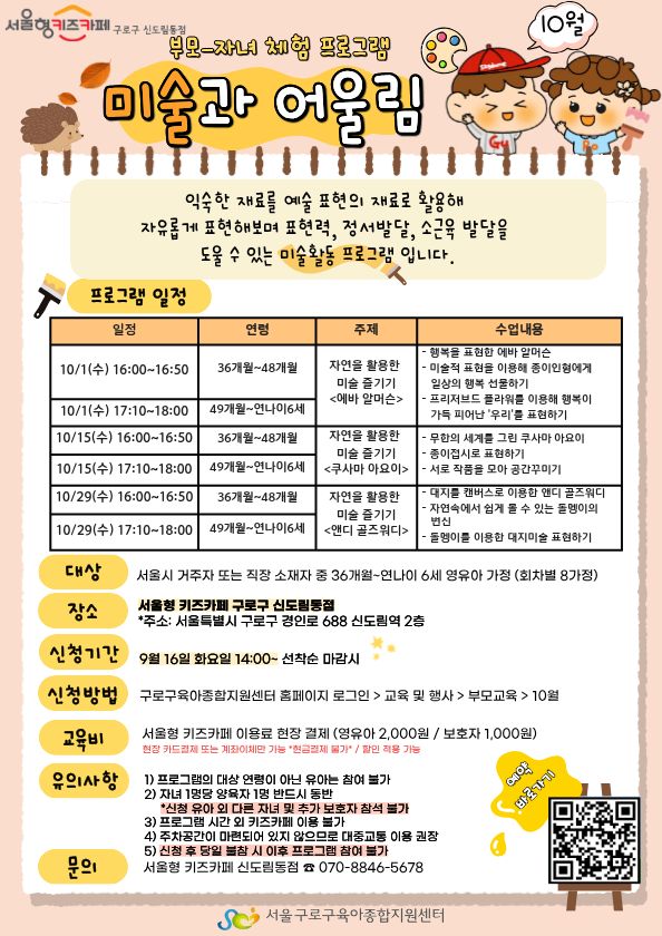 [서울형 키즈카페 신도림동점] 10월 1주 '미술과 어울림 (49개월~연나이 6세)