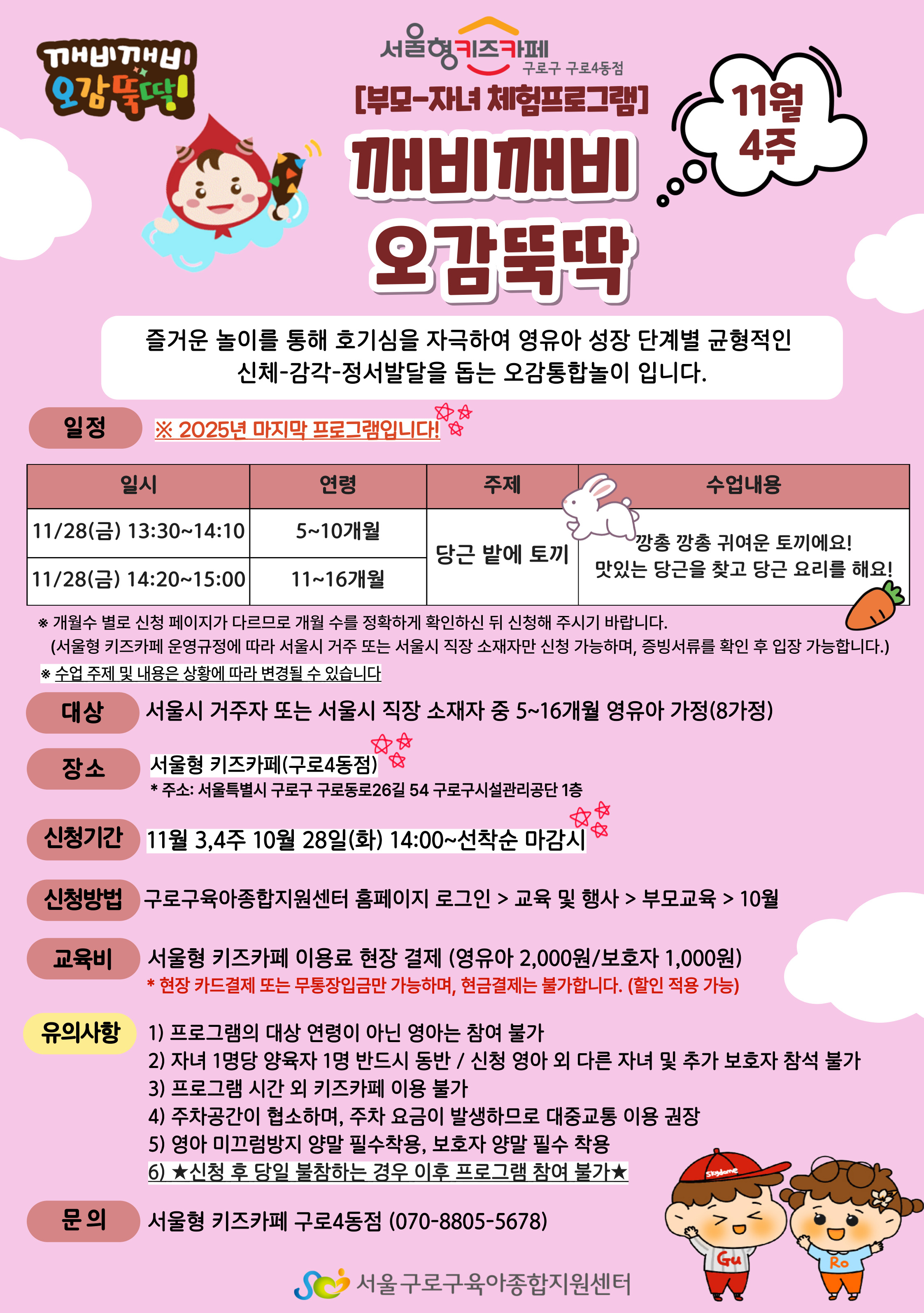 | [서울형 키즈카페 구로 4동점] 11월 4주 '깨비깨비 오감 뚝딱'(11~16개월) |