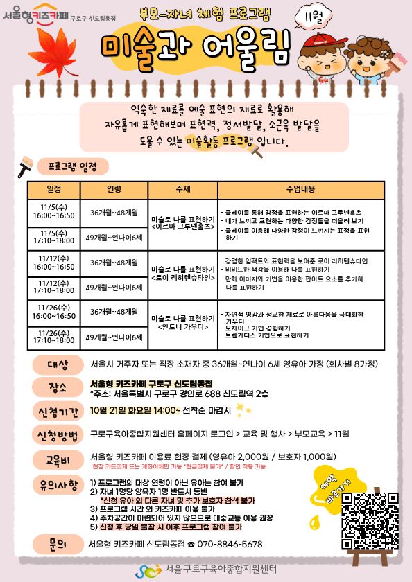 [서울형 키즈카페 신도림동점] 11월 2주 '미술과 어울림' (49개월~연나이 6세)