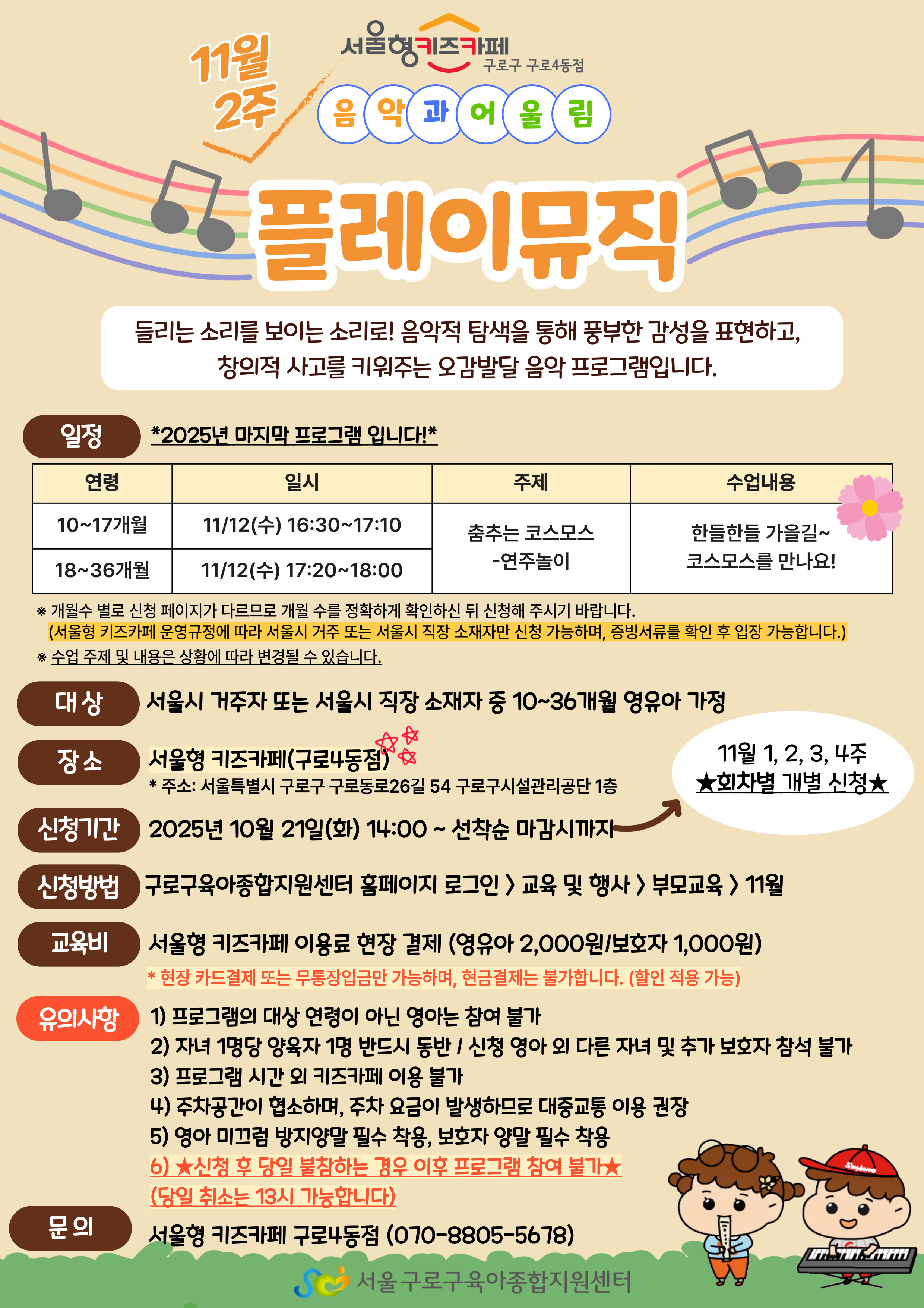 [서울형 키즈카페 구로 4동점] 11월 2주 음악과 어울림 '플레이 뮤직'(18~36개월)