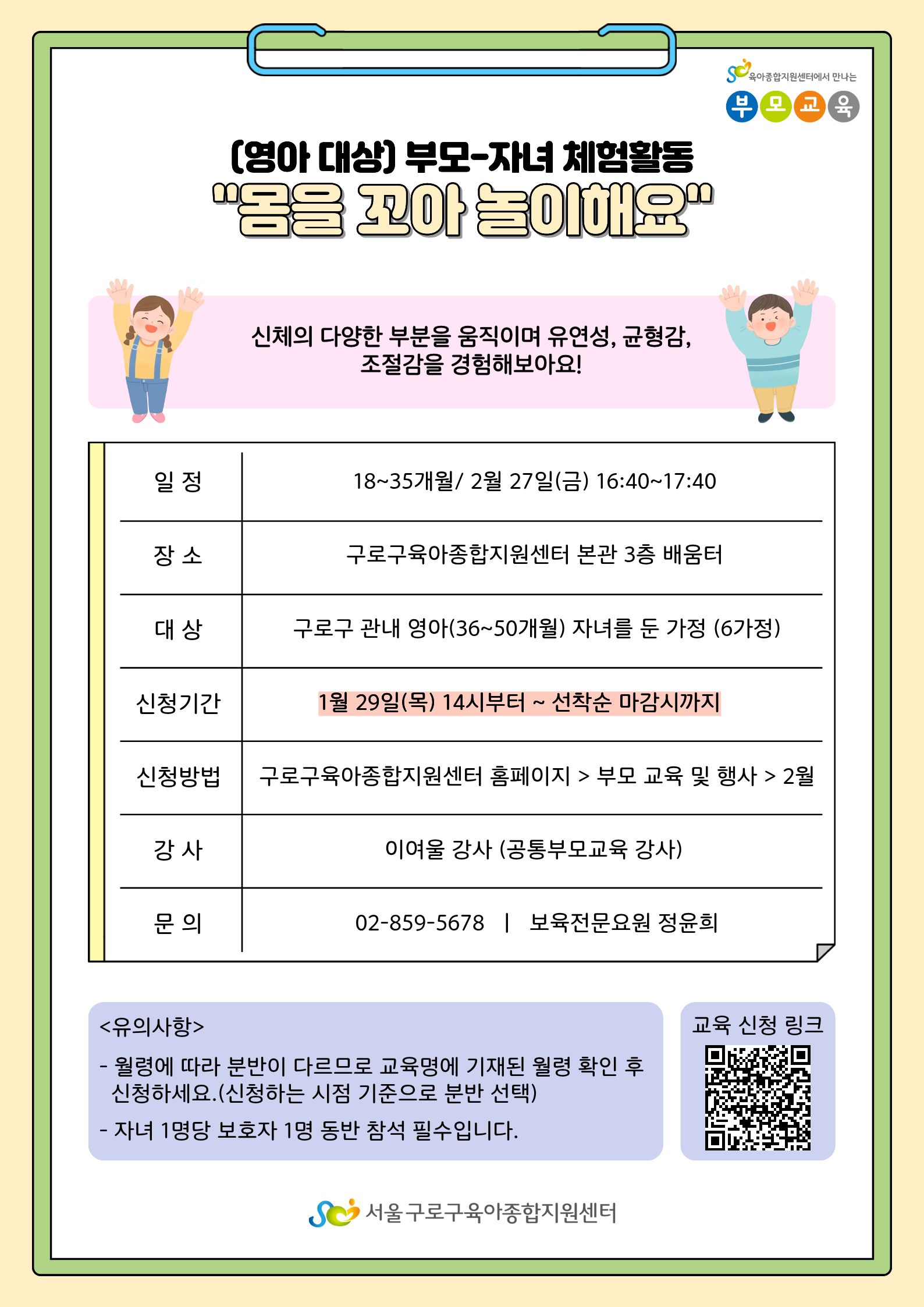 [2월 부모-자녀 체험활동] 몸을 꼬아 놀이해요(유아대상/36~50개월)