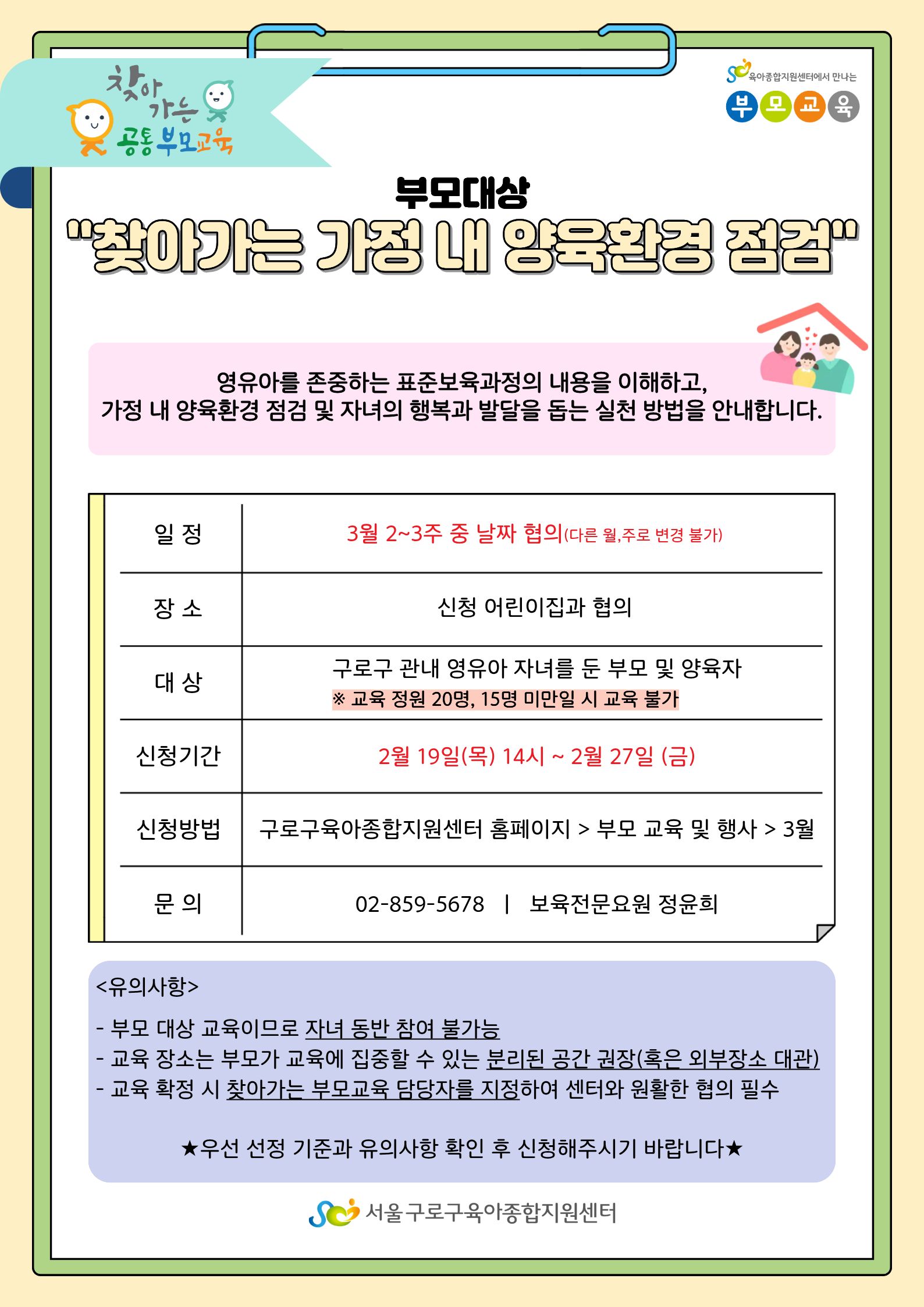 ★어린이집 신청★ [3월 찾아가는 부모교육] 가정 내 양육환경 점검 부모교육