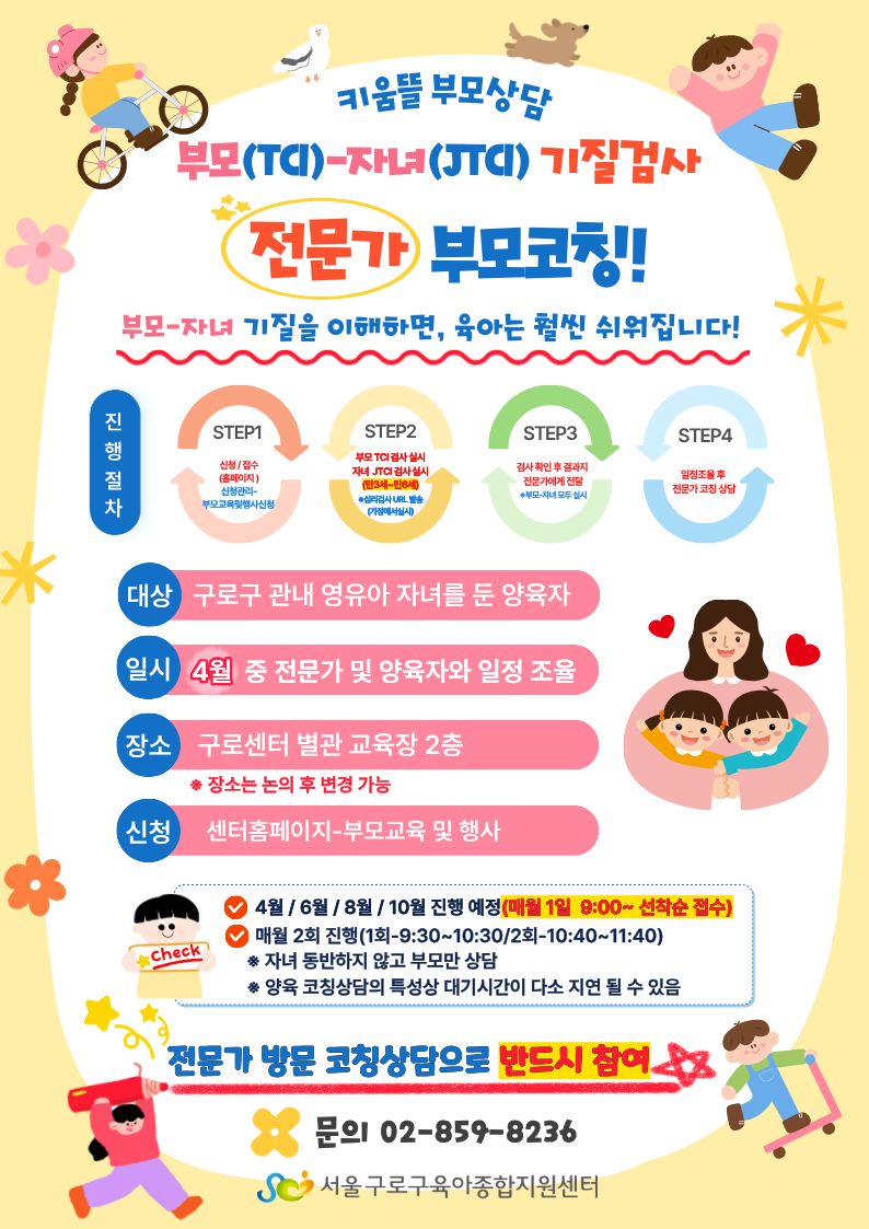 | [키움뜰 부모상담] 전문가 상담 - 부모(TCI)와 자녀(JTCI-만3세~만6세) 기질 및 성격검사 후 양육코칭 상담 |