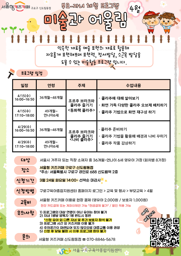 [서울형 키즈카페 신도림동점] 4월 5주 '미술과 어울림' (49개월~연나이 6세)